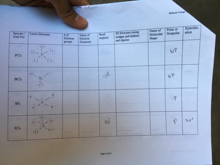 Solved Bellevue College Name Of Polar Or Hybridiz S To Chegg Com - The total number of electrons shown in a lewis structure is the sum of the valence electrons of each atom.