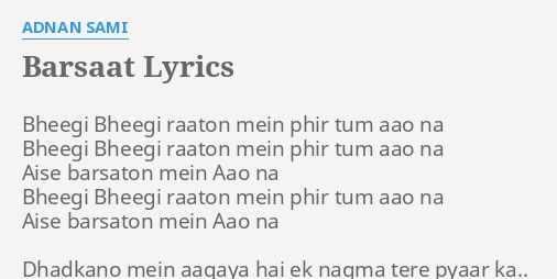 Bheegi Bheegi Raaton Mein Lyrics Adnan Sami - Justsomelyrics 5 5.42 lumsk i trollehender lyrics blink 182 give me one good reason lyrics. Bheegi Bheegi Raaton Mein Lyrics Adnan Sami / Ho, bheegi bheegi raaton mein phir tum aao na aisi barsaaton mein aao na ho, aisi barsaaton mein aao na.