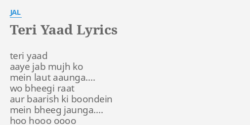 Teri Yaad Lyrics By Jal Teri Yaad Aaye Jab - Palat ke jo dekha aankhen hoeen nam aaya nazar jab adhura sa jevan.