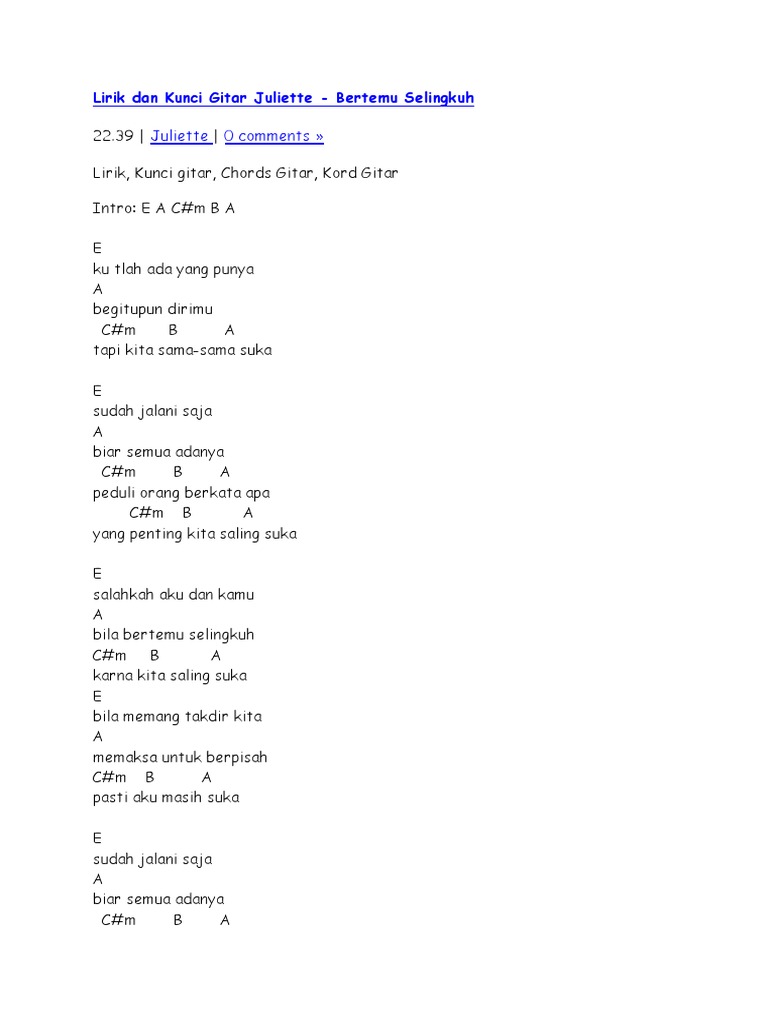 Lirik Dan Kunci Gitar Juliette Bertemu Selingkuh - Am aku tak akan bisa em aku yang bisa gila c b bila kau pergi meninggalkanku.