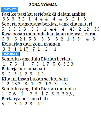 Not Angka Lagu Fourtwnty Zona Nyaman Ost Filosofi Kopi 2 Dunia Lirik Not Lagu - Ya, kelompok musik yang bermaterikan 3 personel;