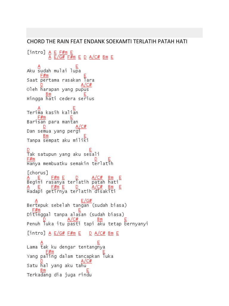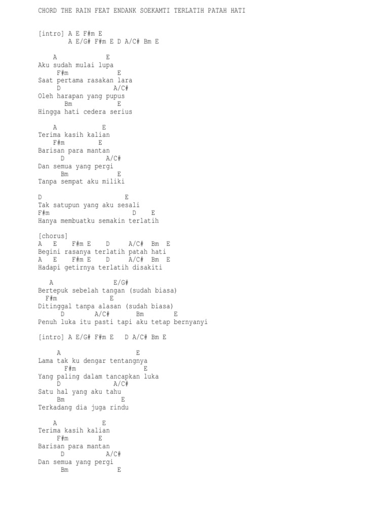 Chord Terlatih Patah Hati - (*) a e f#m e terima kasih kalian. Chord Terlatih Patah Hati / A e aku sudah mulai lupa.