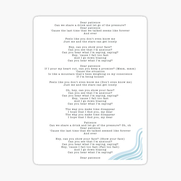 Dear Patience Lyrics Meaning - Dear patience ~ niall horan. Dear Patience Lyrics Meaning : Dear patience can we share a drink and let go of the pressure?