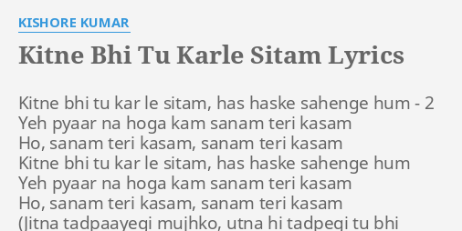 Kitne Bhi Tu Karle Sitam Lyrics In English - Kitne bhi tu karle sitam (male). Kitne Bhi Tu Karle Sitam Lyrics In English - verse 1 d jitna tadapaayegi mujhko d utna hi tadapegi tu bhi.