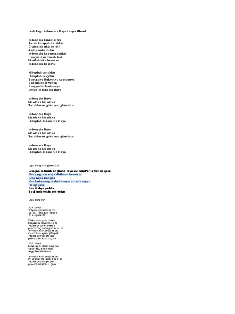 Lagu Dengan Seluruh Angkasa Raya : Kau kukenang wahai bunga putra bangsa harga jasa kau cahya pelita bagi indonesia merdeka. Lagu Dengan Seluruh Angkasa Raya : Kau kukenang wahai bunga putra bangsa harga jasa kau cahya pelita bagi indonesia merdeka.