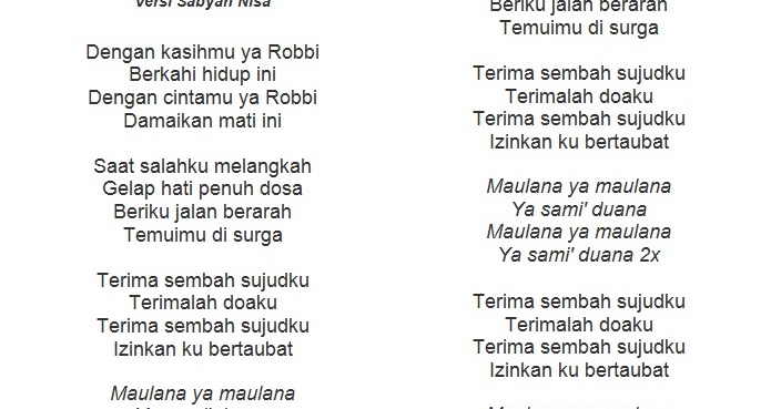 Lirik Sholawat Maulana Ya Maulana Ya Sami Duana Gambar Ngetrend Dan Viral - Free lirik lagu ya maulana nissa sabyan mp3.