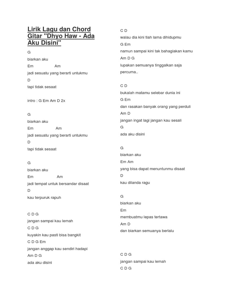 Dhyo Haw Chord Lirik Mp3 For Android Apk Download - Bukalah matamu selebar dunia ini dan rasakan banyak orang yang peduli jangan ingat lagi‚ jangan kau sesali‚ ada aku di sini.