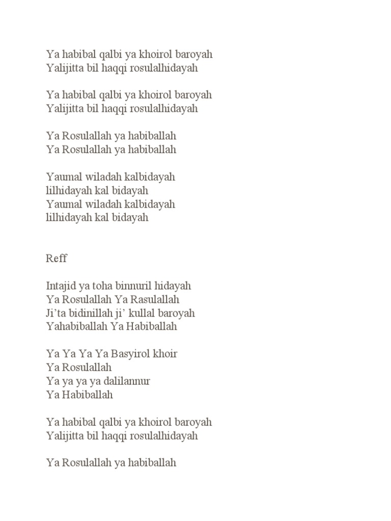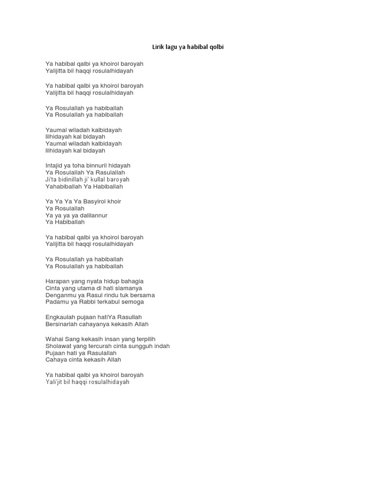 Lirik Lagu Ya Habibal Qolbi Tulisan Latin - Yovie dimulai dengan y, klik y. Lirik Lagu Ya Habibal Qolbi Tulisan Latin / Lirik lagu ya habibal qolbi.
