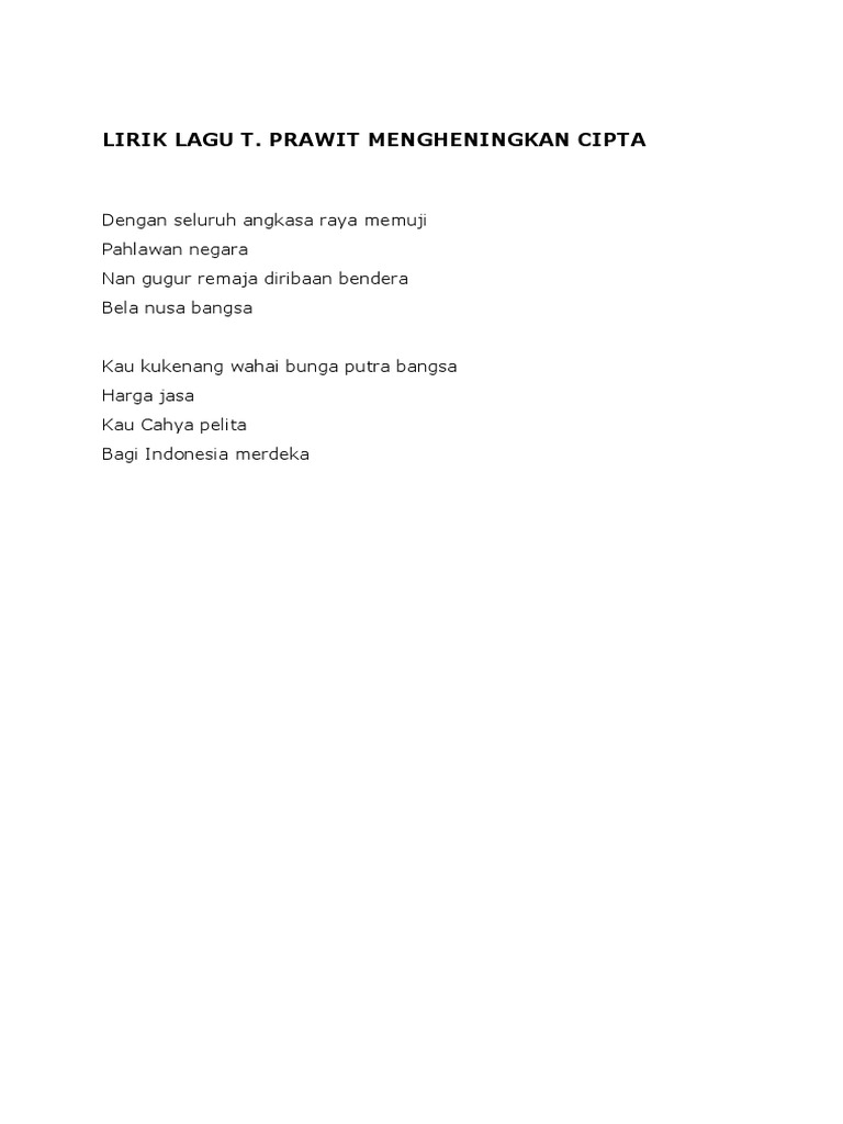 Lirik Lagu Mengheningkan Cipta - Lirik mengheningkan cipta lagu mengheningkan cipta diciptakan oleh t prawit dan merupakan salah satu dari 17 lagu wajib nasional indonesia.