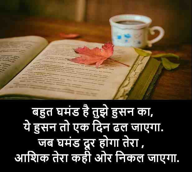 घम ड श यर Ghamand Shayari Hindi Youtube - आज कल लोग royal attitude के माध्यम से अपनी अकड़, घमंड और स्टाइल का दिखावा करते हैं। अक्सर देखा जाता है कि लोग latest attitude shayari for whatsapp & facebook पर पोस्ट.