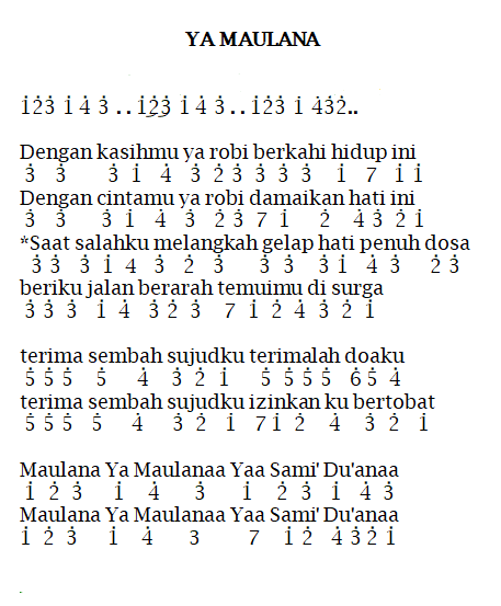 Cp4qpaga Xw M - C f saat salah ku melangkah c f.gelap hati penuh dosa c f.beriku jalan berarah g c d g maulana ya maulana d g.ya sami'duana d g maulana ya maulana d g.ya sami' du'ana.
