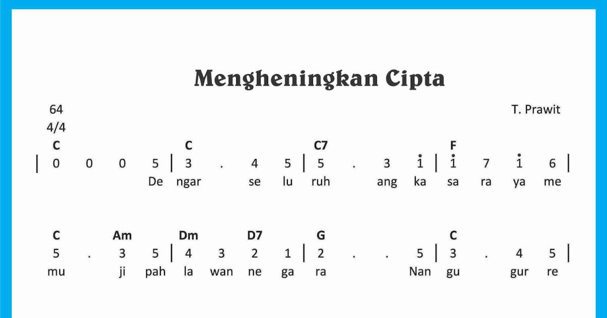 Not Angka Lagu Mengheningkan Cipta Untuk Mengenang Jasa Para Pahlawan Kita Sehingga Indonesia Yang Merdeka Sudah Lebih Dari 70 Tahun Not Musik Lagu Lirik Lagu - Oleh karena minimnya sumber, profil sebagai lagu kebangsaan, mengheningkan cipta ini pertama kalinya dibawakan di tahun 1958.