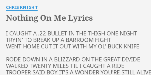 Nothing On Me Lyrics Chris Knight : Create and get +5 iq. Nothing On Me Lyrics Chris Knight : I want nothing on me but you i want nothing on me but you.