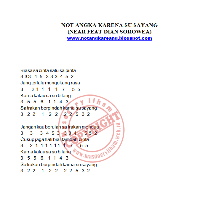 Not Angka Lagu Karna Su Sayang Near Ft Dian Sorowea - Dm g sa trakan berpindah karna su sayang.