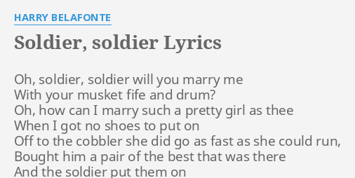Soldier Soldier Will You Marry Me Lyrics / Populyarnye segodnya teksty i perevody pesen Soldier Soldier Will You Marry Me Lyrics / Harry belafonte soldier soldier lyrics & video :