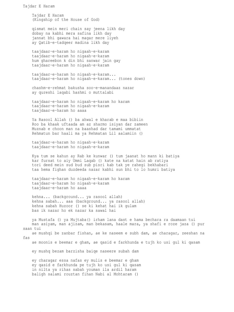 Tajdar E Haram Ho Nigah E Karam Naat Lyrics In Urdu - 3,909 likes · 3 talking about this.