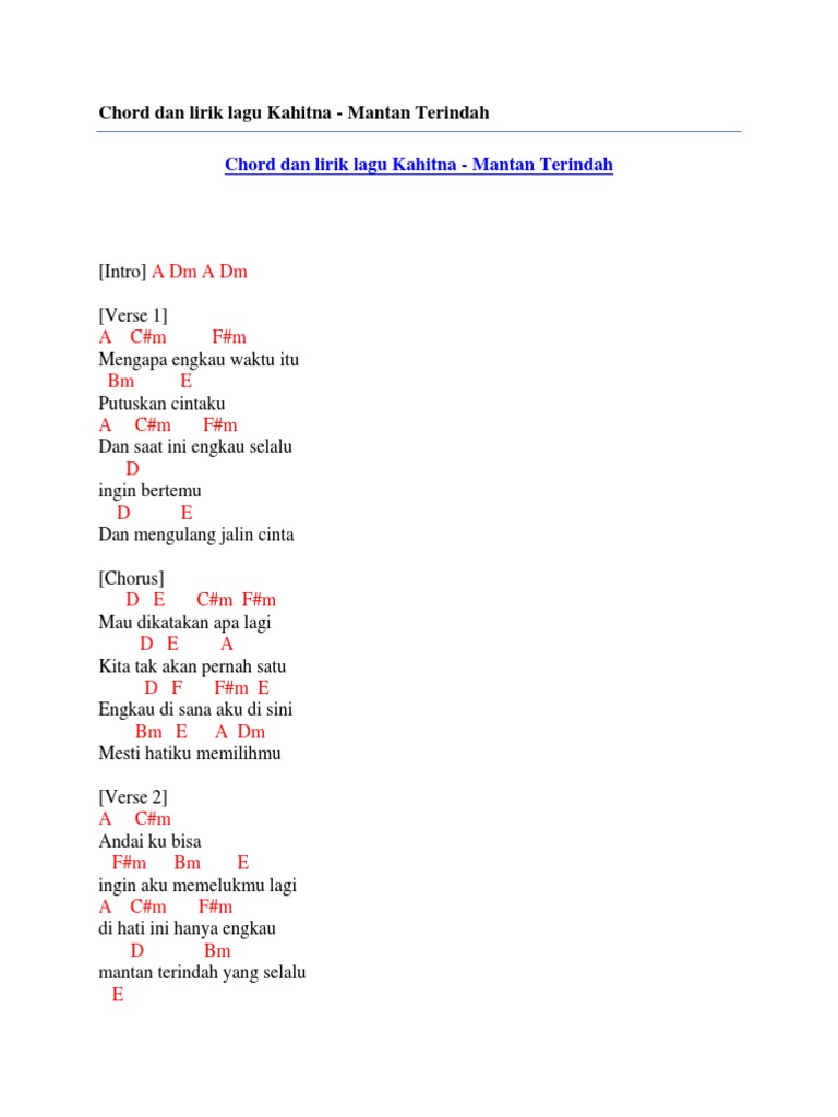 Chord Dan Lirik Lagu Kahitna Mantan Terindah - 2007 this is my own version.