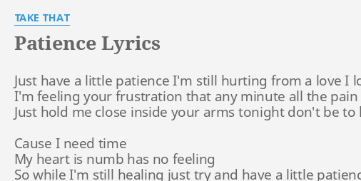 Patience Take That Pretty Lyrics Take That Lyrics Words Of Wisdom Quotes - chorus: 'cause i need time my heart is numb, has no feeling so while i'm still.