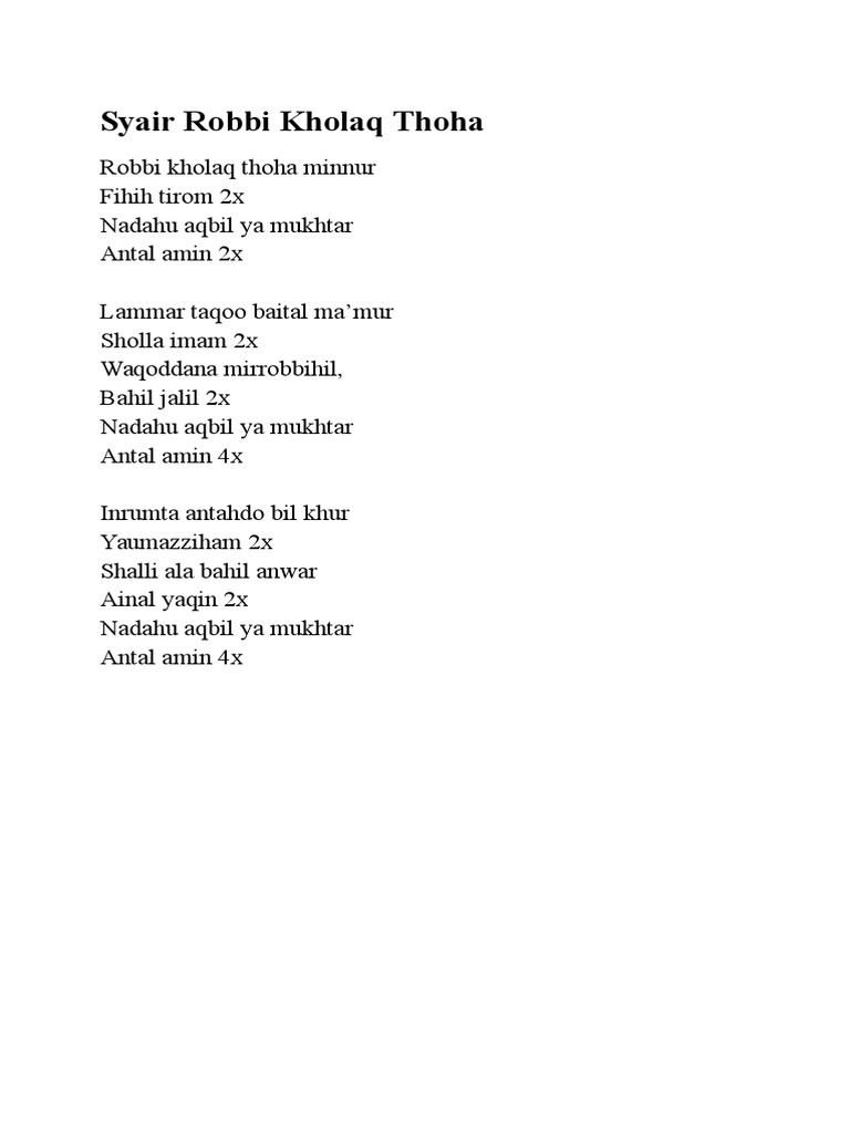 Teks Lagu Robbi Kholaq : Cinta nabi & rasul #3: Teks Lagu Robbi Kholaq : Robbi kholaq thoha minnur lirik arab, latin, dan terjemahnya hd.