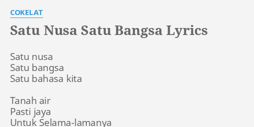 Teks Lagu Satu Nusa Satu Bangsa Dengan Benar / Anda tak mengetahui judul lagu, tapi mengetahui nama penyanyi. Teks Lagu Satu Nusa Satu Bangsa Dengan Benar : Lantunan nada lagu yang cocok dengan kondisi saat ini :