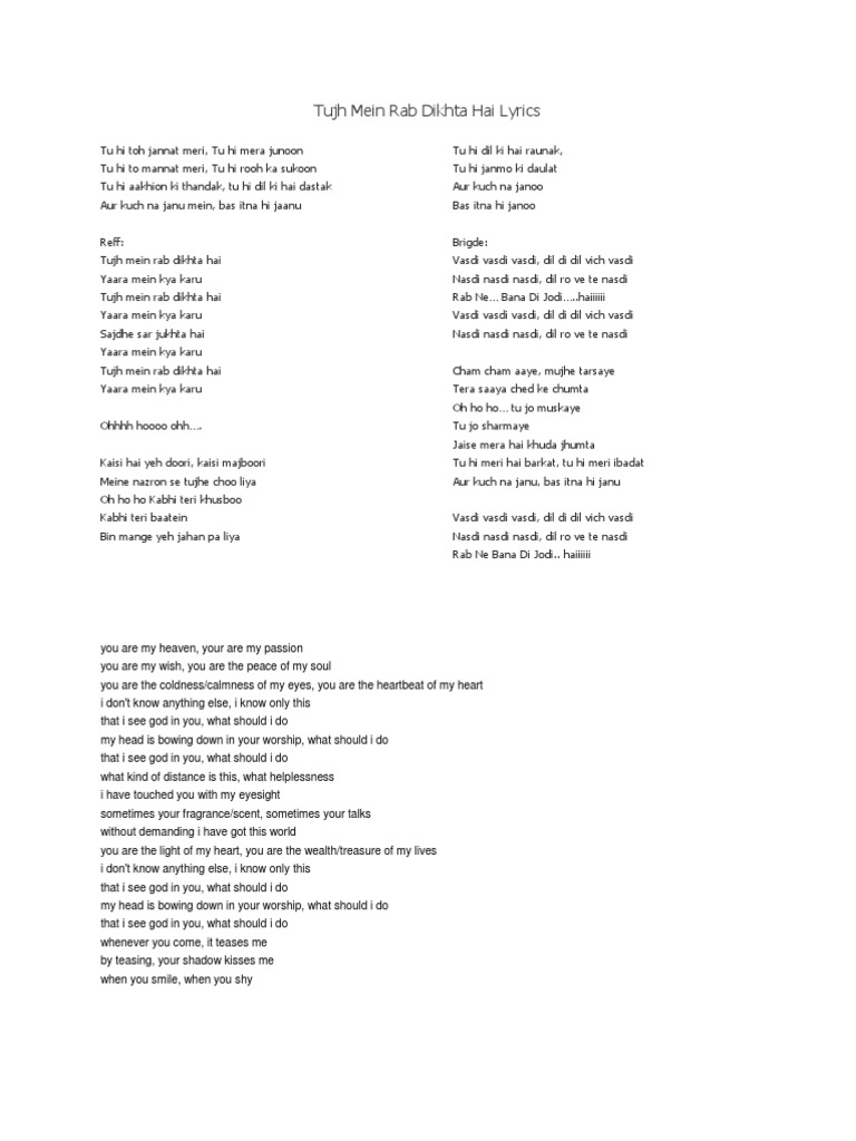 Tujhme Rab Dikhta Hai Female Lyrics Mp3 Song Download : 01:52 2.46 mb 60k downloaded. Tujhme Rab Dikhta Hai Female Lyrics Mp3 Song Download - Tujh mein rab dikhta hai (female version) song with lyrics | rab ne bana di jodi.