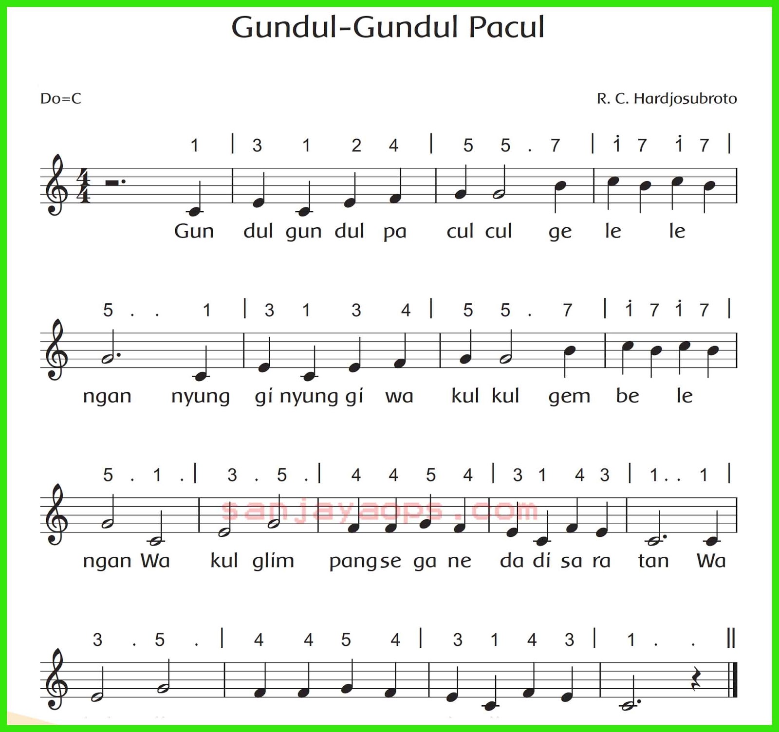 Gundul Pacul Not Angka Not Balok Tunas63 - Kesimpulan, makna lagu gundul gundul pacul secara singkat adalah mengingatkan kepada para pemimpin bahwasanya pemimpin yang mulia bukanlah yang diberi mahkota di kepalanya, namun pemimpin yang mulia adalah pemimpin yang mengupayakan kesejahteraan rakyatnya.